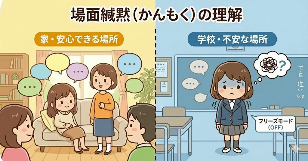 完全に話せないわけではないため、「少し恥ずかしがり屋なだけ」と見過ごされがちですが、本人の内面では強い不安が生じています。
